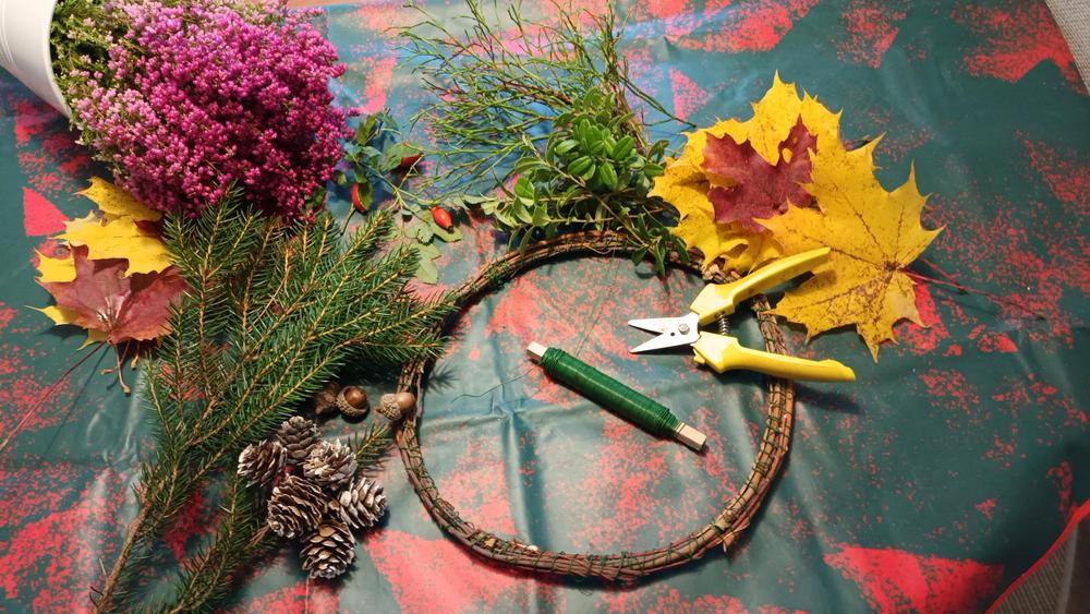 Luonnonmateriaalia, jolla kranssipohjan voi päällystää. Tähän sopi esimerkiksi kuusenhavut, tuijan lehdet, värikkäät lehtipuiden lehdet, mustikan- ja puolukanvarvut, kävyt, kanervat ym. luonnosta löytyvät, joita teillä on mahdollisuus omasta pihastanne tai muualta luvalla kerätä. Hyvä materiaali on myös Calluna, joita tällä hetkellä myydään sesonkikasvina kohtuuhintaan.