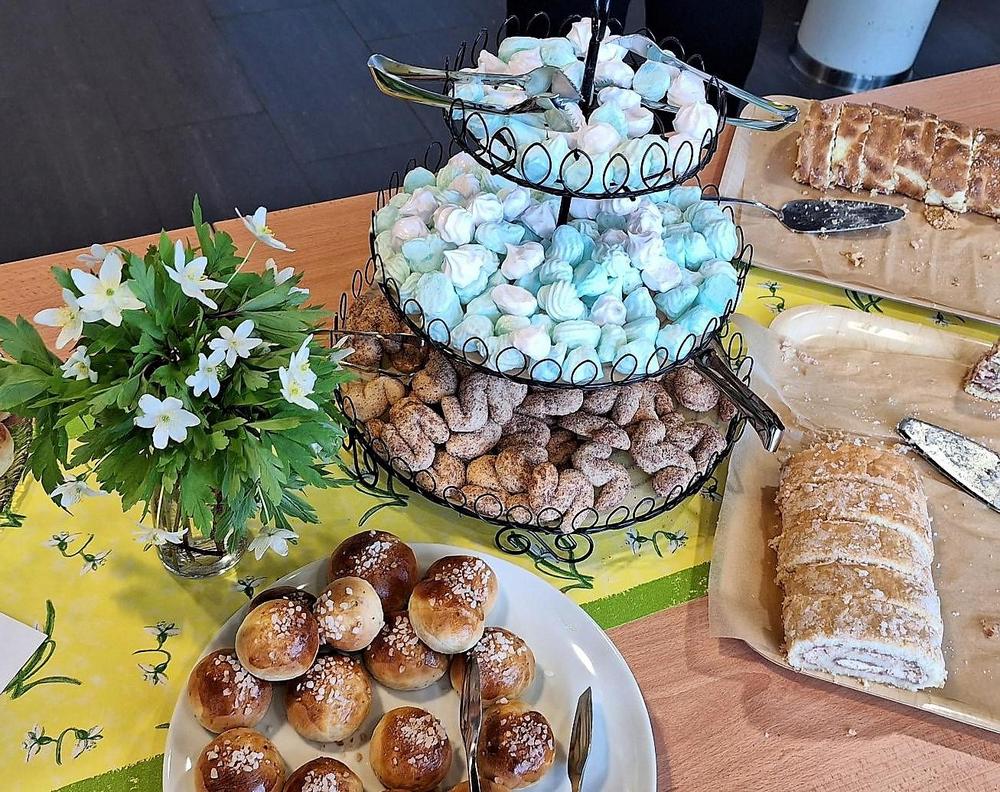 Ennen konserttia nautittiin marttojen kattamasta herkullisesta kahvi/tee-buffesta, jossa oli monensortin makeaa ja suolaista. Samalla tavattiin tuttuja kyliltä ja tutustuttiin uusinkin tuttavuuksiin.
